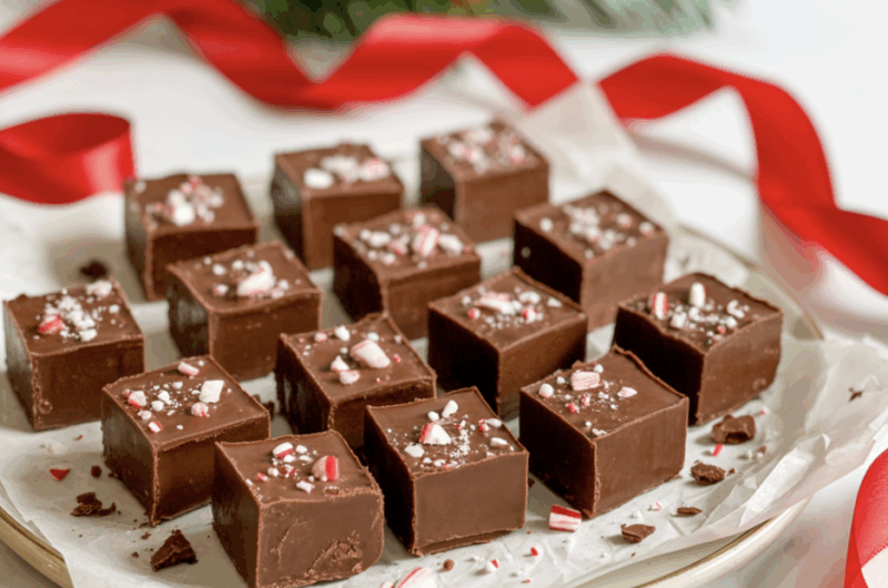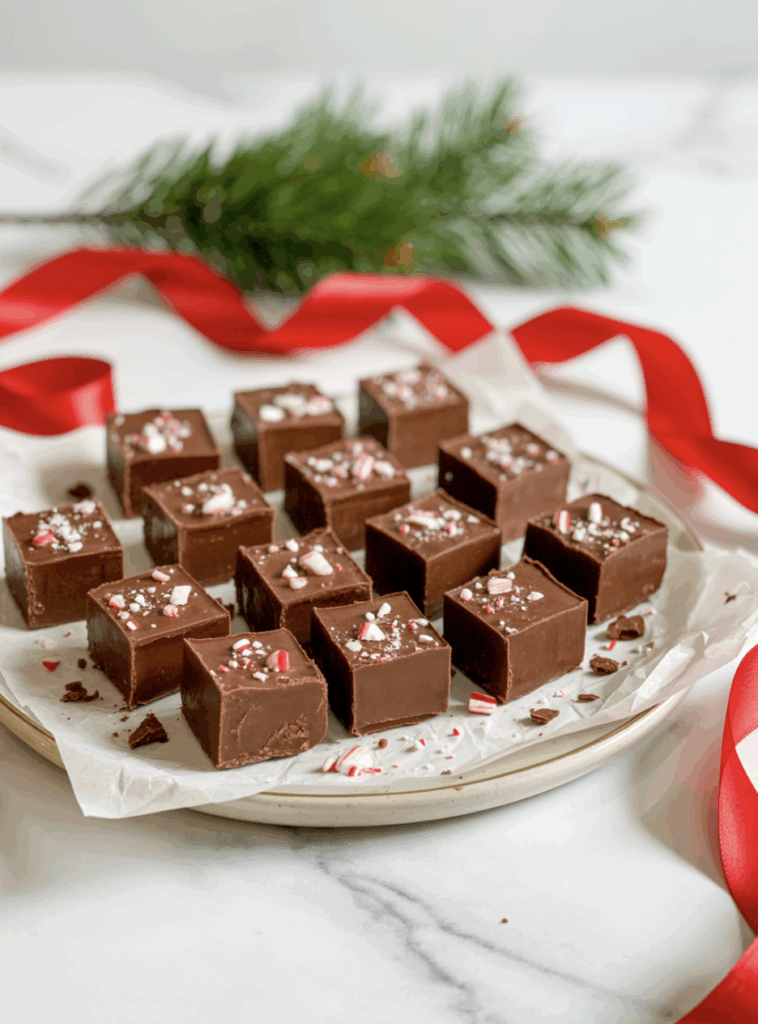 Mix everything in a bowl until smooth. Spread into a small parchment-lined dish and freeze for 30 minutes. Slice into squares and sprinkle with crushed candy canes before serving.