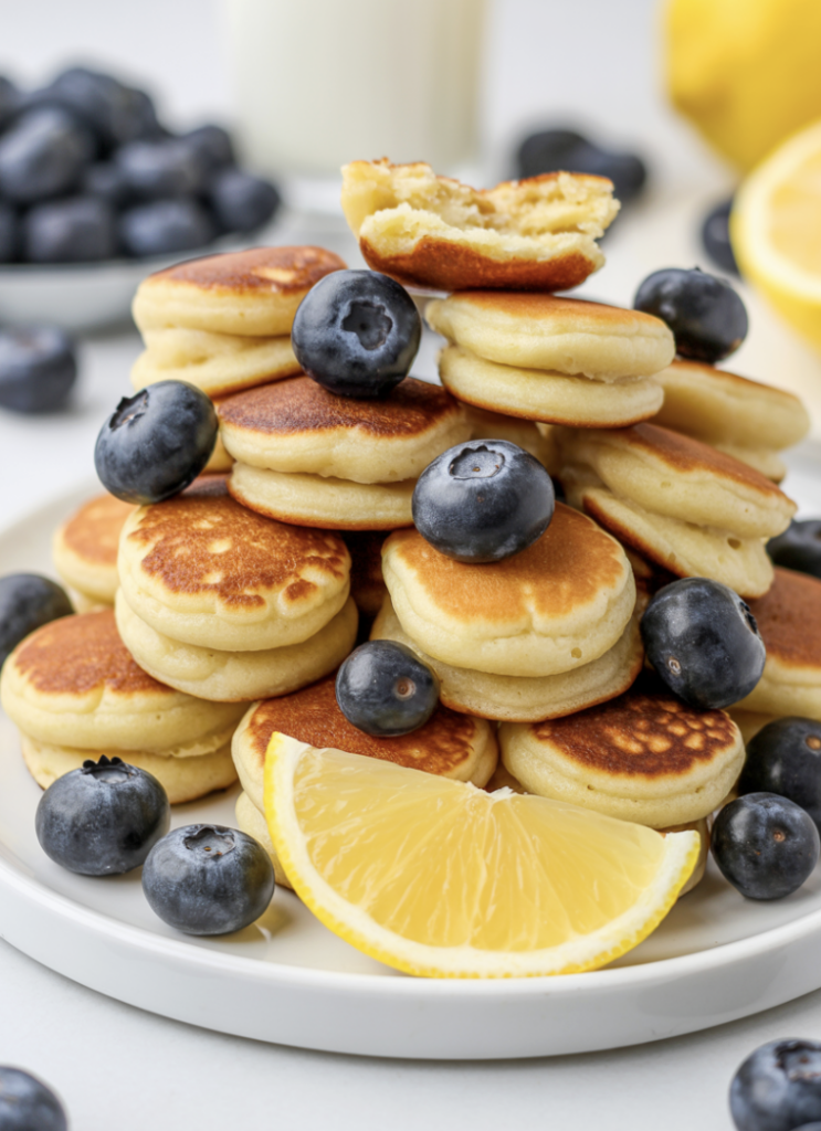 Today, I’m going to make mini blueberry lemon pancakes! They’re so easy to make and so delicious!