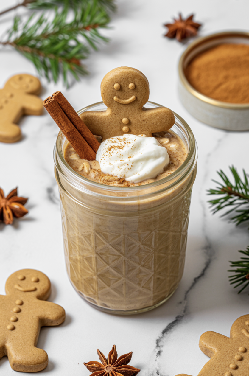 Imagine waking up to a jar filled with creamy oats, warm spices, and that classic gingerbread cookie flavor. It’s like Christmas breakfast magic without the effort.