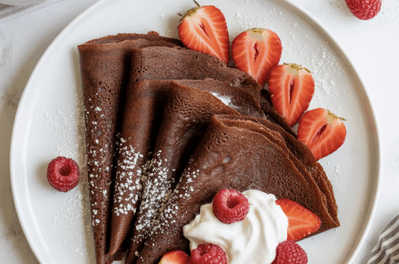 - Stack the crepes, layer them with Greek yogurt or whipped cream, and top with berries for a picture-perfect finish.