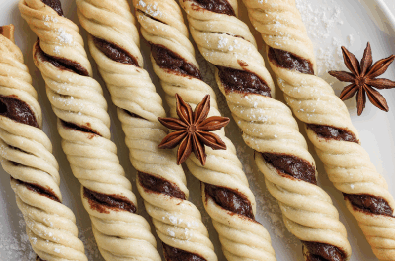 Spread Nutella over half of the puff pastry, fold it over, slice into strips, and twist each one. Brush with egg wash and bake at 375°F (190°C) for 12-15 minutes until golden brown.